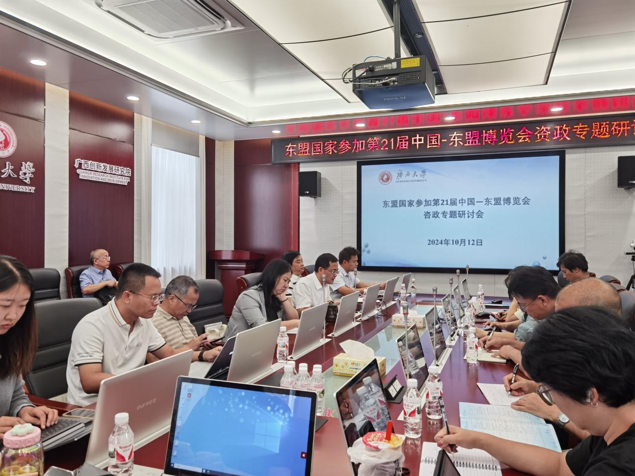 2024年9月24日至28日,第21届中国—东盟博览会、中国—东盟商务与投资峰会成功举办。为深入学习贯彻习近平总书记提出的全球发展倡议、全球安全倡议、全球文明倡议和共建中国—东盟“五大家园”重要倡议,10月12日上午,我院在创发院212会议室召开东盟国家参加第21届中国—东盟博览会咨政专题研讨会,由梁运文执行院长主持,全体智库科研人员参会。