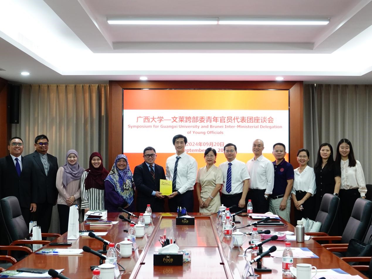 9月20日下午,文莱跨部委青年官员代表团一行6人来访我校,就我校与文莱的合作情况进行交流。国际合作与交流处处长关熔珍、中国—东盟研究院/广西创新发展研究院执行院长梁运文出席座谈会。