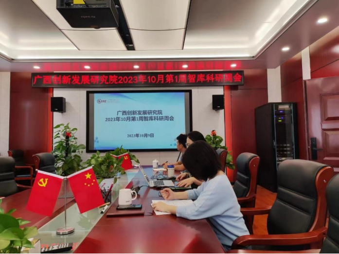 10月9日,创发院召开10月第1周智库科研周会。周会由创发院龙桂杰副教授主持,创发院智库科研人员及智库管理岗负责人参会。会上,创发院智库科研人员根据时事跟踪任务分工,逐一汇报分享了2023年9月25日至10月8日国内和广西时事要闻、热点资讯信息。