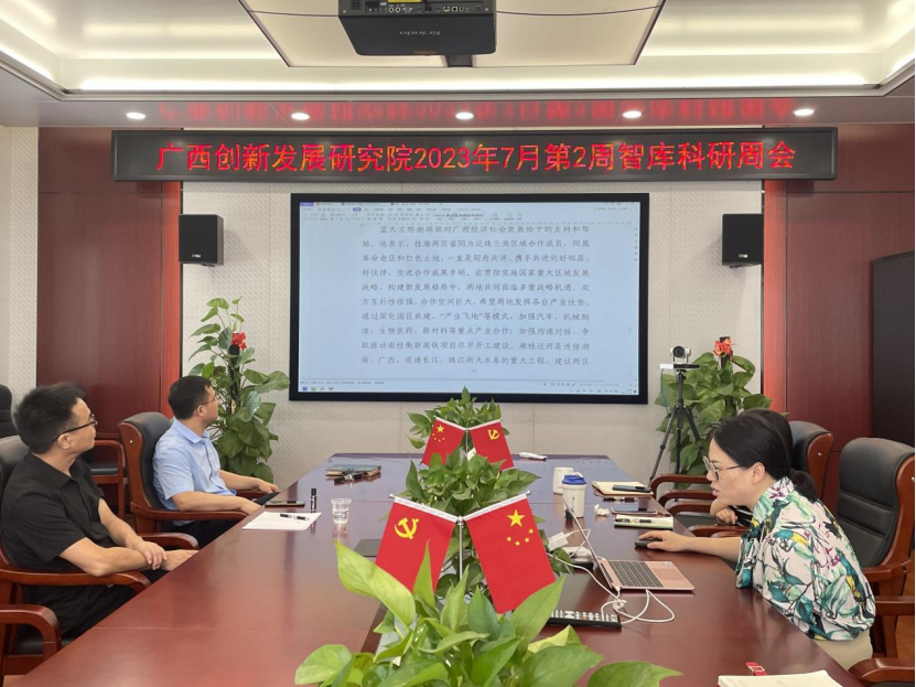 会上,创发院智库科研人员根据时事跟踪任务分工,逐一汇报分享了2023年7月第2周国内和广西时事要闻、热点资讯信息。