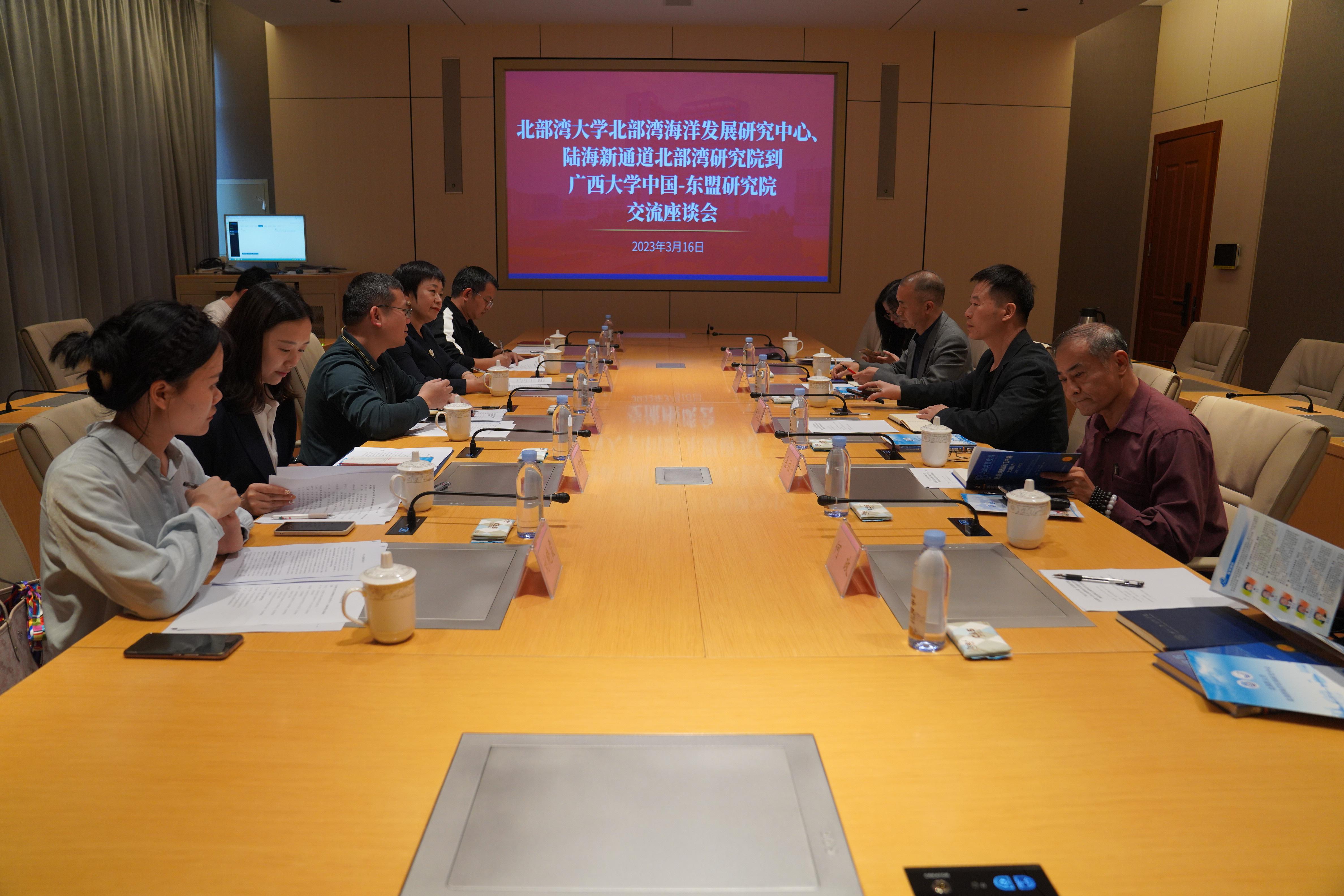 3月16日,北部湾大学经济管理学院党委书记许旭志率北部湾大学北部湾海洋发展研究中心、陆海新通道北部湾研究院代表团一行6人到我院访问,与我院研究人员进行了座谈,座谈会由中国-东盟研究院院长王玉主主持。