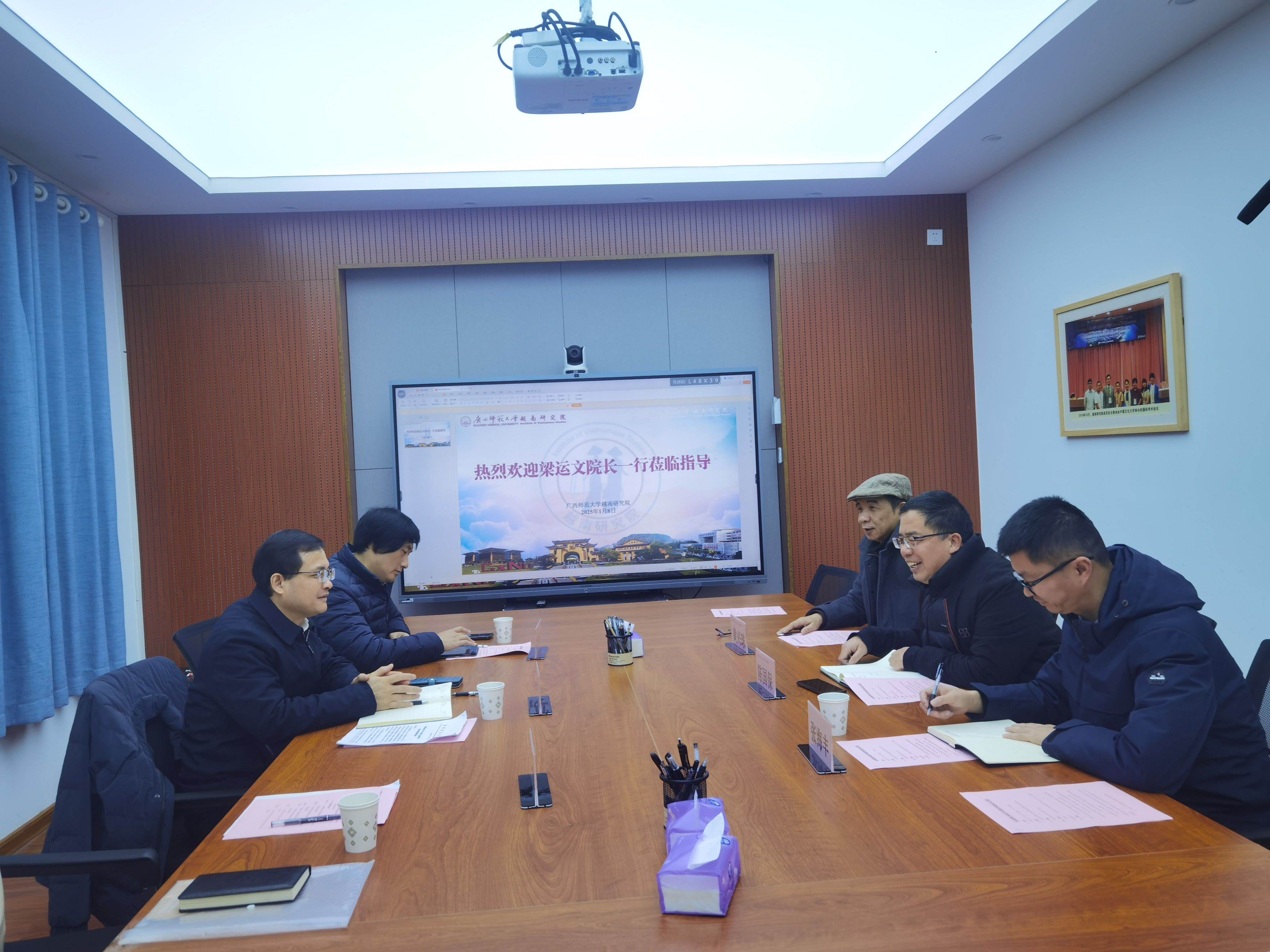 为了交流学习智库建设与研究先进经验与做法,2025年1月8日上午,我院梁运文执行院长带队赴广西师范大学越南研究院、东盟区域与国别研究院调研交流,我院罗传钰副院长等参加调研。