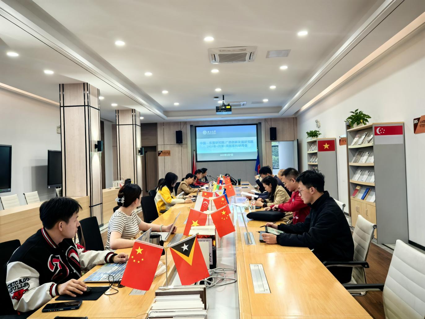 4月7日上午,我院在中国—东盟研究院国别研究楼三楼大厅召开2025年4月第1周智库科研周会,全体智库科研人员以及舆情研究助理参会。