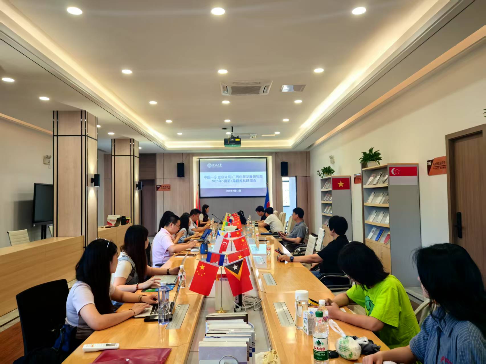 5月12日上午,我院在中国—东盟研究院国别研究楼三楼大厅召开2025年5月第2周智库科研周会,全体智库科研人员以及舆情研究助理参会。
