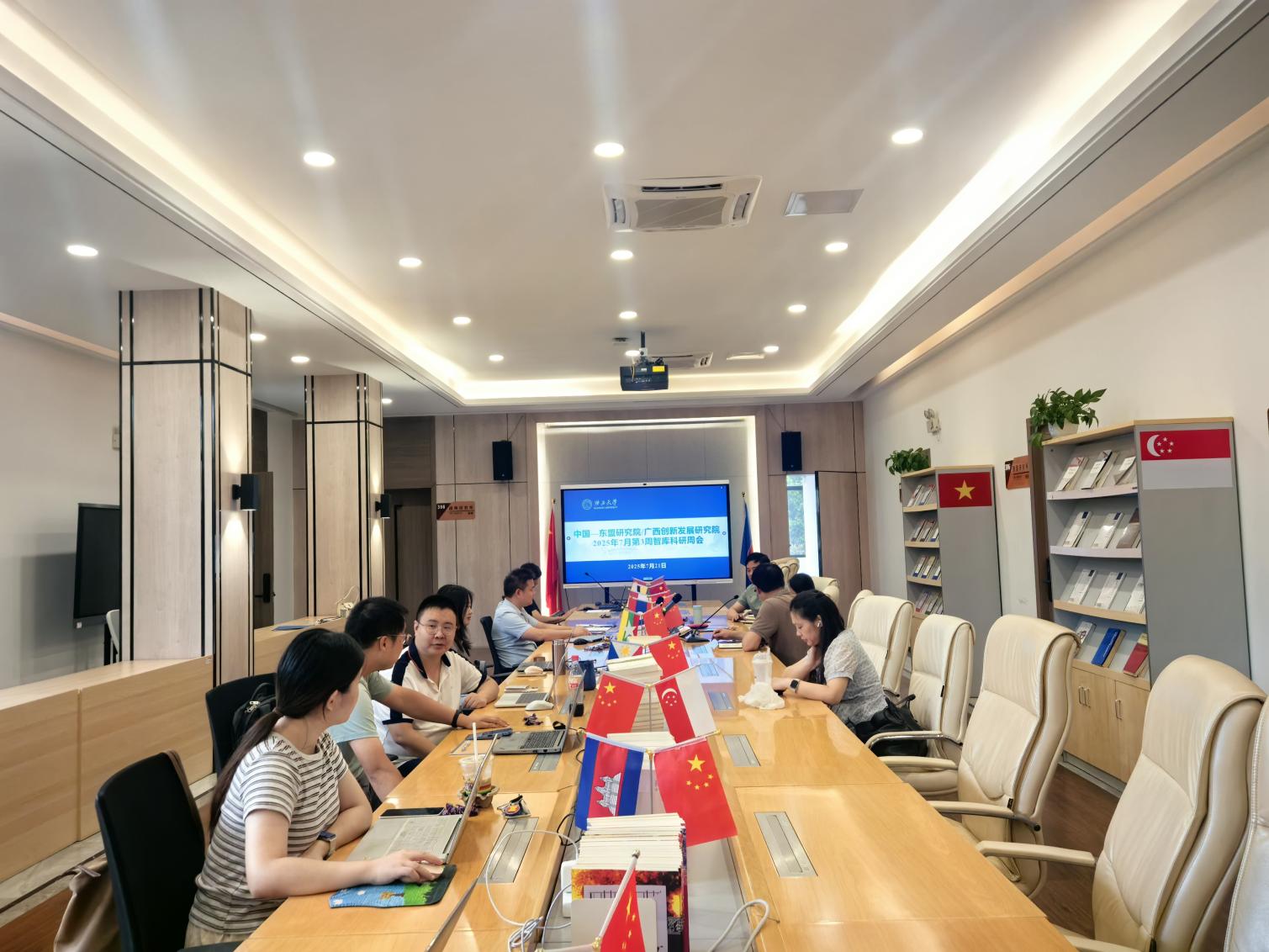 7月21日上午,我院在中国—东盟研究院国别研究楼三楼大厅召开2025年7月第3周智库科研周会,全体智库科研人员以及舆情研究助理参会。