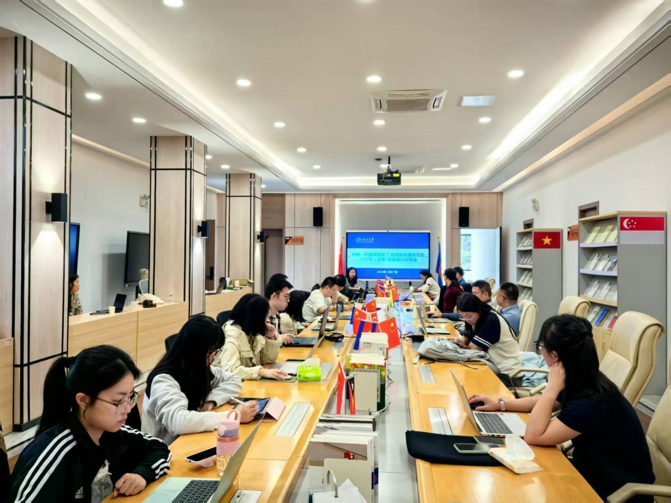 11月17日上午,我院在中国—东盟研究院国别研究楼三楼大厅召开2025年11月第3周智库科研周会,全体智库科研人员、舆情研究助理以及博士研究生参会。