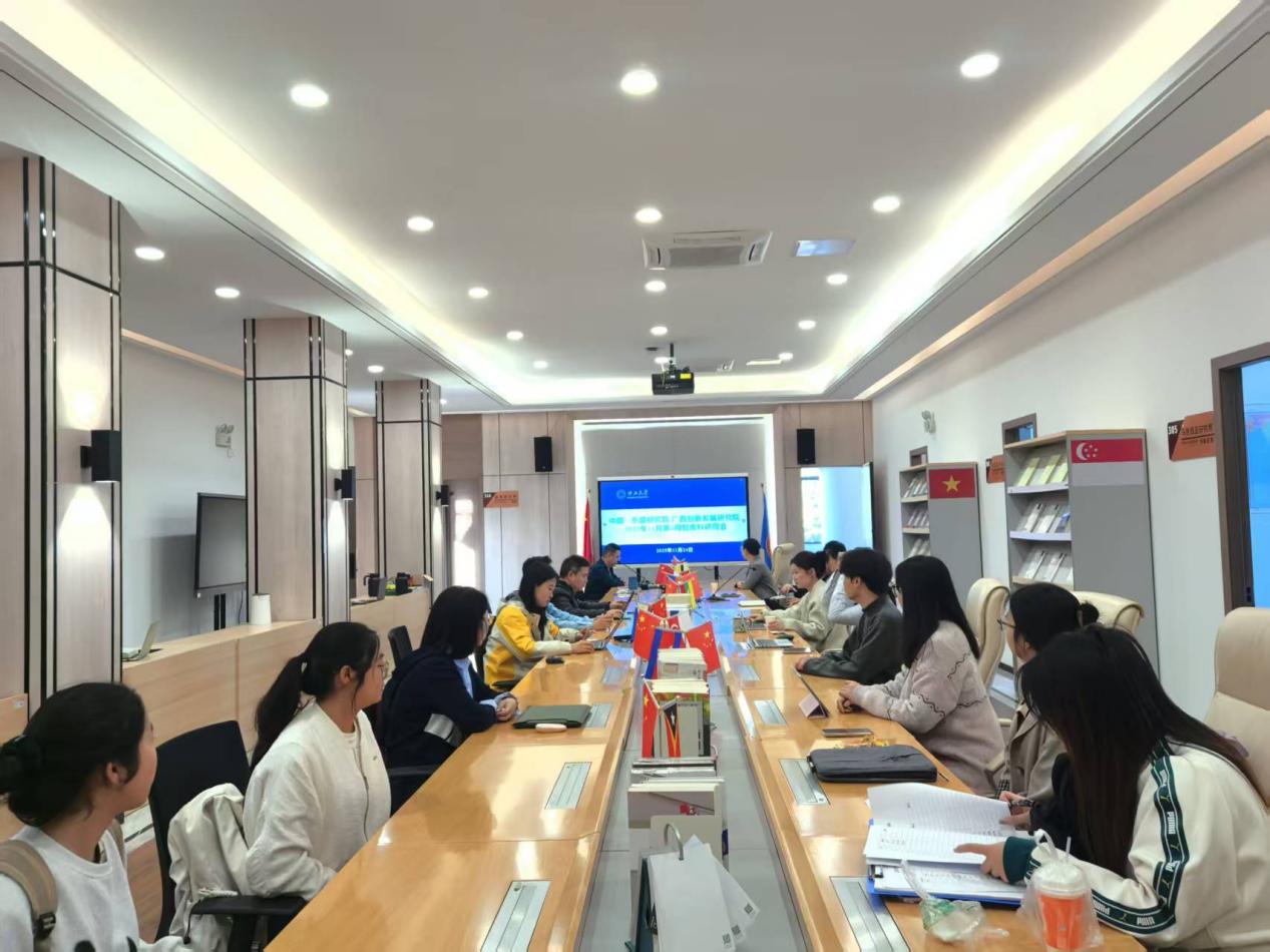 11月24日上午,我院在中国—东盟研究院国别研究楼三楼大厅召开2025年11月第4周智库科研周会,全体智库科研人员、舆情研究助理以及博士研究生参会。