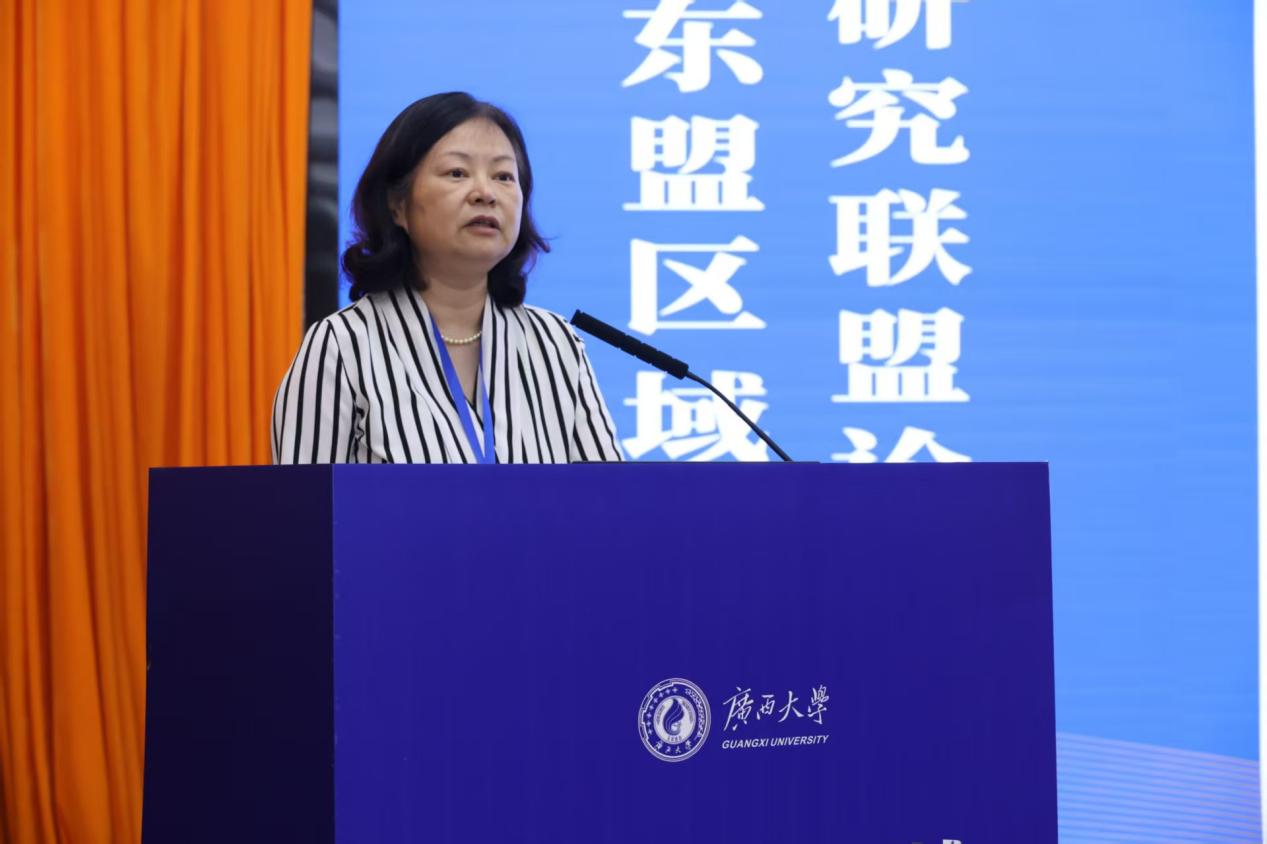 北部湾大学党委常委、副校长陈丹作题为《北部湾大学区域国别研究情况》的发言。她介绍到,北部湾大学紧扣国家海洋强国战略部署,主动对接区域发展重大需求,聚焦RCEP实施、自由贸易试验区建设等前沿领域,围绕中国—东盟经贸合作、海洋经济与产业跨境协同、通道物流体系构建等方向开展系统性研究,产出一系列高质量研究成果。她提到,近年来北部湾大学10余项东盟相关课题获得省部级以上立项,连续4年出版北部湾港发展系列蓝皮书,主办北部湾经济区智库论坛、首届海洋可持续性研究生研讨会等国际会议,主办中国海洋生态经济发展·钦州论坛等国内会议,与马来西亚沙巴大学、印尼哈山努丁大学等高校签订国际合作协议,等等。她指出,北部湾大学将充分发挥区位与学科优势,借力加入中国—东盟区域国别研究联盟的契机,主动加强与区内外高校及科研机构的协同合作,持续深化科学研究、政策服务与国际交流工作,努力在东盟区域国别研究领域发挥更大作用、贡献更多智慧。