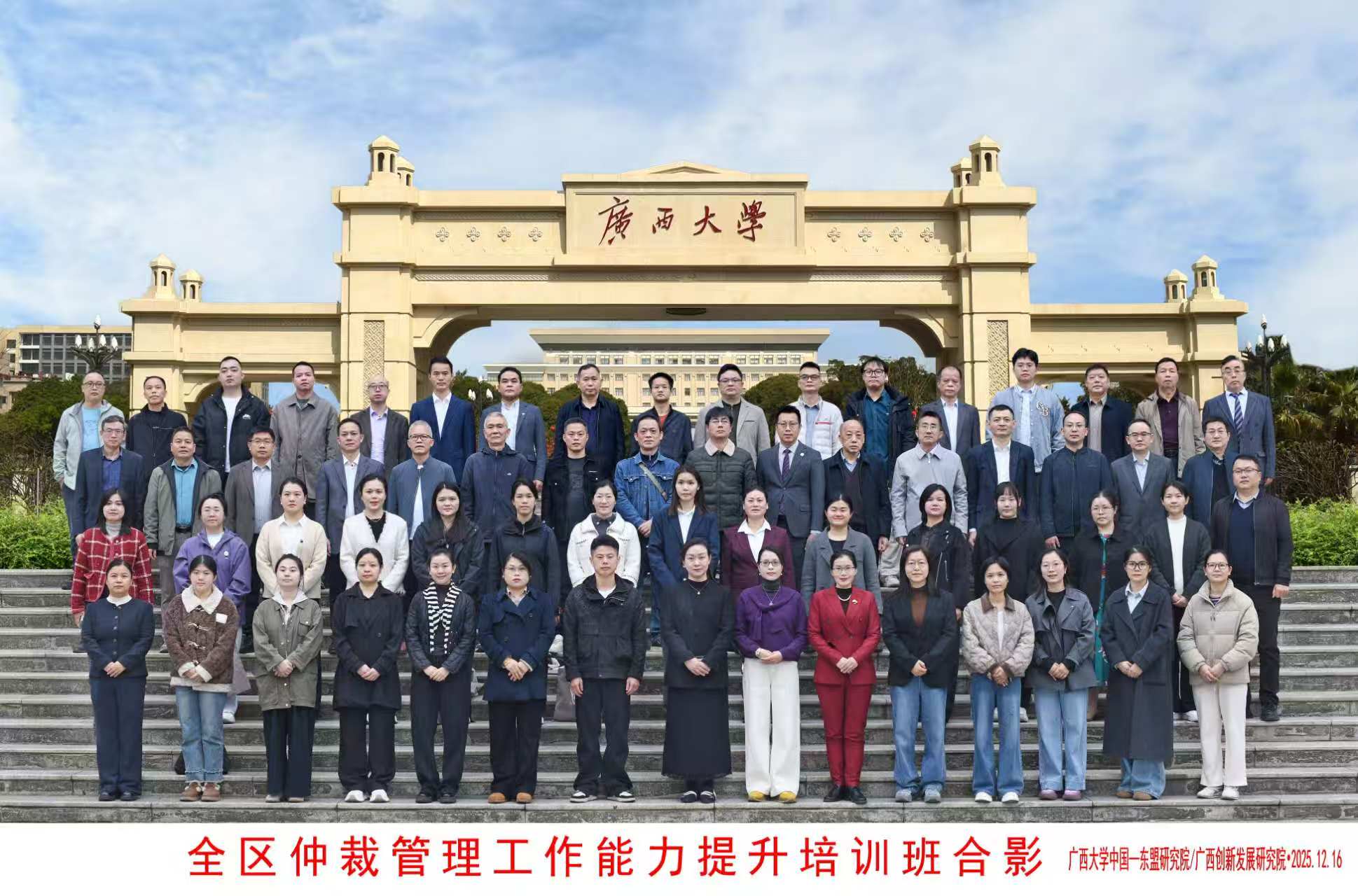 2025年12月15日至18日,我院顺利举办全区仲裁管理工作能力提升培训班。来自全区各级仲裁机构、司法行政系统的业务骨干参加了本次专题学习。
